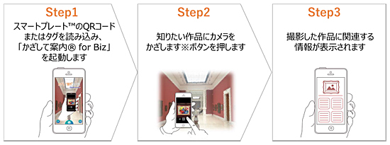 実証実験では、横浜美術館の来館者に、作品鑑賞をより気軽に楽しんでもらうことを目的として、画像認識AIサービス「かざして案内 for Biz」を活用し、来館者自身のスマートフォンを展示作品にかざすことで作品に関する情報を画面に表示する。これにより、来館者は作品名や制作年などの作品情報を手元で知ることが可能になり、美術館にとっては鑑賞シーンの多様化による来館者の満足度向上を図ることができる。実証実験の期間は、8月5日から9月1日まで、横浜美術館 展示室2で実施する。