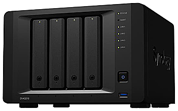 デフォルトでクアッドコア2.1Ghz CPUと4GB DDR4を搭載し、最大32GBまで拡張可能。4つの1GbE(RJ-45)ポートを内蔵し、フェイルオーバーとLink Aggregationに対応している。2つのSynology DX517拡張ユニットで最大14台のドライブまでスケールアップできる。さらに、100以上の有名ブランドの7100種類以上のカメラモデルとの互換性を備えている。