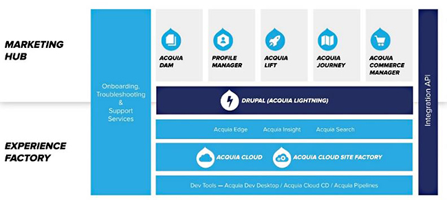 Acquia Open Digital Experience Platformは、オープンソースのCMSであるDrupalをベースに、グローバルレベルのウェブサイトの構築・運用からコンテンツ管理、ウェブマーケティングまで対応できるクラウドサービス。Drupalに最適化されたPaaS(Platform as a Service)を利用しているため、Drupalを組み合わせることによる開発生産性の向上を図ることができるとともに、柔軟にサイト作成が可能となり、ユーザーのニーズに即したサイトを早期に構築できるなど多数のメリットがある。