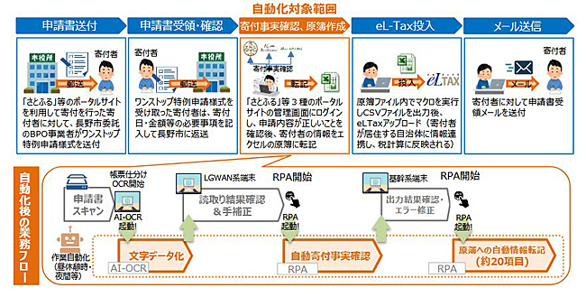 一方、長野市では、労働人口の減少が予想される中、自治体業務を刷新に取り組んでいる。実証実験期間は5月7日から6月28日まで。繁忙期の業務量に課題があるふるさと納税業務、児童手当の受付業務、予防接種の管理業務の3業務を対象に実施した。