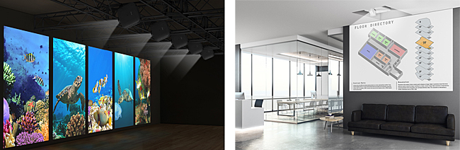 高輝度モデルとして、明るさ9000lmを実現した「EB-L1490シリーズ」、本体の軽量コンパクト化を実現した「EB-L1070シリーズ」など、明るさ5500lm~9000lm帯に新しく6機種を投入する。ラインアップが増えたことで企業の大会議室や教育機関の大講堂に常設設置するなど、設置場所・用途に応じて、さまざまな解像度・明るさの中から適した1台を選択できる。また、ランプ交換が不要なレーザー光源を搭載し、メンテナンスの手間を軽減した。
