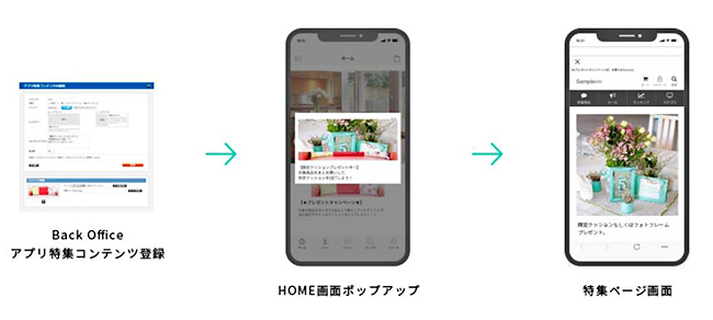 また、ecbeingがもつ豊富な顧客のセグメント機能やキャンペーン機能もそのままアプリのPUSH通知などに活用できるため、よりアプリの活用シーンを増やすことが可能となる。