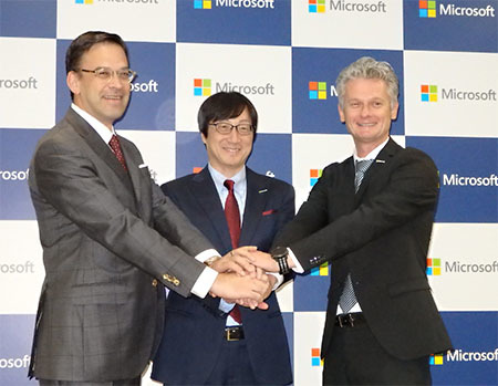 会見には、8月31日付で社長を退任し、9月から米マイクロソフトでワンコマーシャル パートナーグループ バイスプレジデント グローバル システム インテグレーター ビジネス担当で日本マイクロソフトの特別顧問に就任した平野拓也氏と、吉田社長のレポートラインであるラルフ ハウプター アジア プレジデントも同席した。