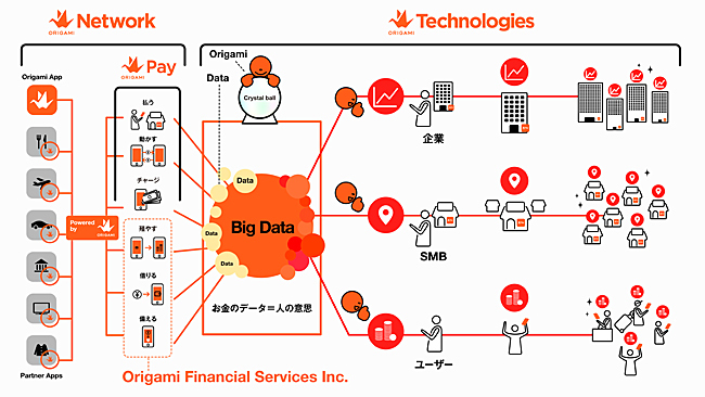 Origamiは、スマホ決済サービス「Origami Pay」を提供しており、加盟店舗数は今年末時点で145万カ所になる見込みだ。Origami Technologiesでは、このOrigami Payの決済データや、提携企業が保有する構造化されたデジタルデータを集約し、効果的にデータを分析、活用していく。