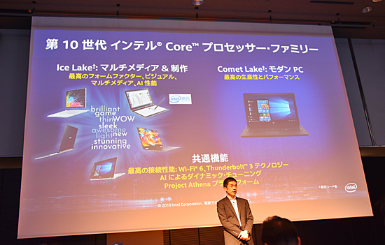 第10世代Coreプロセッサーは、10nmプロセス製造のモバイルPC向け「Ice Lake」と、現行デスクトップCPUと同じ14nmプロセス製造の「Comet Lake」の二つがある。