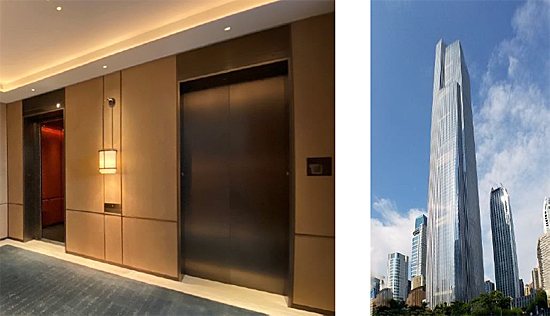 日立は2012年、日立ビルシステム、日立電梯(中国)とともに、広州周大福金融中心向けのエレベーターやエスカレーター計151台を受注し、順次納入を進めてきた。世界最高速エレベーターは、分速1260mで走行し、地上1階から95階のホテルロビーまでの440mを約42秒で結ぶという。