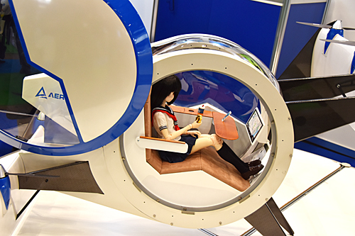 試作1号機は一人乗りの機体で、実際の3分の1サイズほど。今後は複数の人が乗ることができる機体を開発・発表する予定だ。田路CEOは「次は二人乗り、向い合せではないシートでの4人乗り、最終的には向い合せシートの4人乗りを開発していく」とロードマップを説明した。
