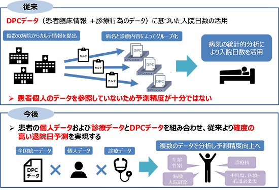 従来は、傷病名や手術の有無、重症度などを識別する14桁の番号「DPCコード」によって予測してきたが、入院患者の症例や重症度、施設類ごとの変化については考慮できず、効率化に限界があった。