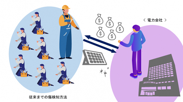 太陽光パネルの故障は、ホットスポットによる故障と、パネルガラス割れによる故障の2種類がある。ホットスポットによる故障は、赤外線サーモグラフィなどを用いた従来の検知方法により未然に防ぐことができる。しかし、パネルガラス割れによる故障は、故障の原因となる傷が極めて微細なため、従来の方法では検知することができず、作業員による定期点検が必要だった。