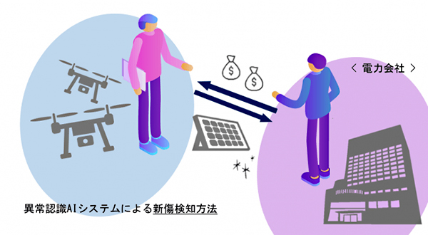 TRUST SMITHは、最先端異常検知AI技術を用い、新たなパネル亀裂検知ドローンを開発。システムを活用することで、点検作業の省人化や点検コストの削減ができる。また、点検が安価になったことで、パネル点検の頻度を高め、太陽光パネルの安全性が担保できるようになるという。