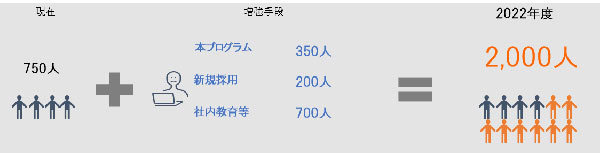 今後は、育成プログラムによりAI技術者を現状の750人から2022年度までに約3倍となる2000人へ増強し、AI研究開発の質の向上と規模を拡大させる。