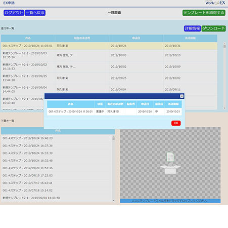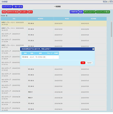 また、申請者や承認者がPC環境(Windows)に依存せず申請や承認を行えるウェブアプリケーション「EX申請」「EX承認」を標準機能として提供する。利用者が申請や承認を行うためのツール(ドキュメントエクスプローラー)を利用するためには「Windows」「.NET Framework」が必須など、環境にいくつか準備が必要だったが、EX申請とEX承認では最新ブラウザー環境とOffice環境さえあれば、すぐに利用することができる。