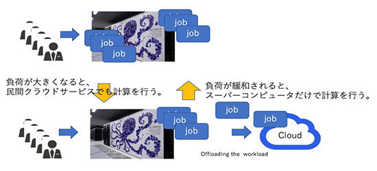 OCTOPUSは研究者の需要増大により、計算要求から計算完了までの待ち時間が定常的に長時間になるという課題を抱えていた。これに対し、IaaS型クラウドサービスを利用した解決法が検討されていたが、これまでスーパーコンピューターと民間のクラウドサービスの同時利用は、利用者の管理、計算の管理などに相違があるなど、運用面で課題があった。