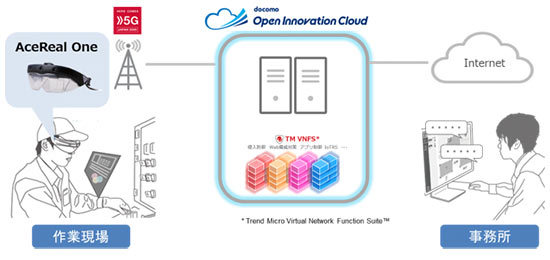 AceReal Appsは、ARスマートグラス「AceReal One」を作業者が装着し、遠隔地の支援者がPCから現場の状況をリアルタイムに把握して、遠隔地から作業のチェック・指示などの業務支援ができる遠隔支援ソリューション。5Gを用いることで映像や音声の遅延が少なくタイムリーで、臨場感のある情報共有が実現する。また、リッチコンテンツを幅広いエリアでスムースに転送できるので、これまで利用用途が限られていた動的コンテンツの利便性・適用範囲が大きく向上する。