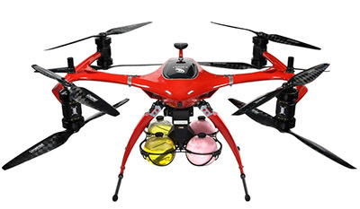 消防車が入れない場所の消火活動に、消火剤を投下するドローンを発売