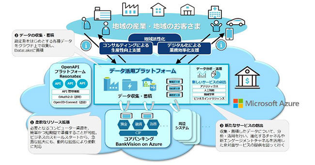 今後は、北國銀行と日本ユニシスは、BankVisionのAzure上での稼働と並行して、Azure上でのデータ活用プラットフォームの実現に向けた検討を行い、銀行データと地域データを活用した地域エコシステムの実現を目指す。