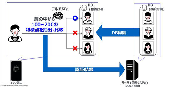 煩わしいICカードの管理・運用や、ICカードの盗難・なりますしによるセキュリティ問題に対応するため、顔の検知・認証処理を行う顔認証デバイスとデータベースの管理・認証処理を行う管理プラットフォームで構成したトータルソリューションとして提供する。顔認証デバイスには、一体型専用端末とアプリケーション型を用意した。