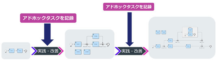 主な追加機能として、アドホックタスク機能では、プロセスの実行中に想定外の業務が発生した際に、業務の内容に応じてその場でユーザーがタスクを追加できる。想定外の業務のタスク管理・プロセスへの組み込みが可能となり、その履歴管理や定型化にも対応する。