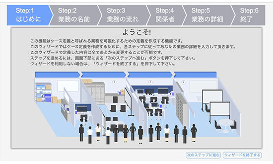 また、Case Designer機能により、ケース定義作成機能を強化。非構造なプロセスの状況の可視化を実現し、業務を俯瞰しながらの整理を促進する。ウィザードに従って段階的に業務を定義でき、Case Designerで作成したプロセスはビジネスプロセスの表記法(BPMN)の図に変換することができる。