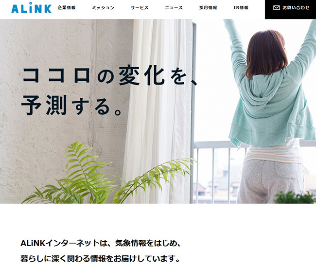 ALiNKインターネットは、日本気象協会との共同事業である気象メディア「tenki.jp」の運用に伴いインターネット広告分野に軸足を置き、「未来の予定を晴れにする」を経営理念に掲げている。