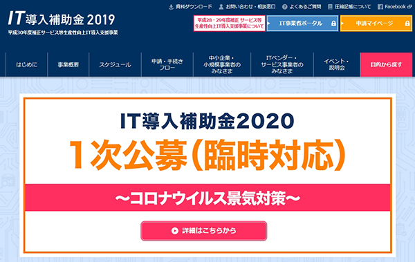 IT導入補助金2020 1次公募(臨時対応)=https://www.it-hojo.jp/2020emergency/
