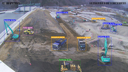 建設現場では、効率的な進捗管理に向けて工事の施工状況を定点カメラで常時モニターし、現場事務所などの遠隔地から映像を通して現場状況の確認等を行う事例が増えている。一方、映像の情報だけでは、工事の進捗状況を把握するうえで、「工事の完成形状に対する進捗状況が直感的にわかりにくい」「施工量(盛土量など)や距離・面積などの定量的な情報が取得しづらい」「稼働しているダンプや建機の台数などの常に変化する情報を素早く把握できない」といった課題があった。