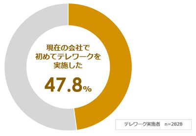 今回の調査は、新型コロナウイルス対策がテレワークにもたらした影響を定量的に把握し、日本の雇用・働き方の再考に資する分析を行うために実施したもの。調査の結果、正社員のテレワーク(在宅勤務)の実施率は13.2%、そのうち現在の会社で初めてテレワークを実施した人は半数近い47.8%となった。国勢調査を基に簡易的に推計すると、約360万人の正社員がテレワークを実施しており、そのうち約170万人が初めてという結果となった。