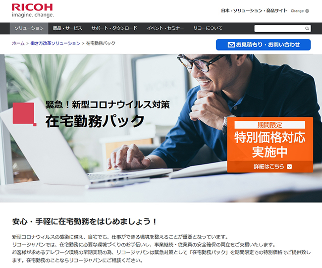 リコー、「在宅勤務パック」で中小企業のテレワークを支援