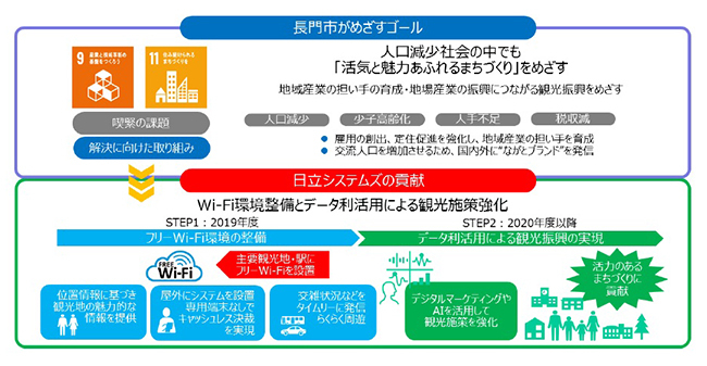 なお今回、日立システムズが構築したWi-Fi環境は、長門市の魅力ある観光エリアで、セキュアで高速なフリーWi-Fiサービスを提供する。Wi-Fiサービスは、国内外の来訪者に対して、各観光地の魅力的な情報発信を支援するほか、屋外店舗でもキャッシュレス決済システムの基盤として利用できる。また、Wi-Fiで収集しているログデータを蓄積・分析することで、来訪者数や滞在時間、リピーター数などが数値化できるため、観光に関する多様なデータをより正確に把握できるようになる。さらに、Wi-Fiで収集したログデータをPOSデータと連携することで、さらなる観光振興や地域産品の消費向上などに活用することが可能となる。
