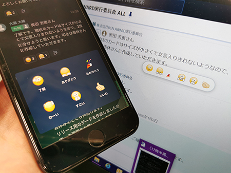 使用開始当初はグループへの投稿は控えめだったが、徐々にその頻度は高まっていった。投稿したコメントは後から編集する仕様も背中を押した。また、既読がつかないので、全ての投稿にリアクションする必要はないし、リアクションするときもクリック一つで絵文字を送れば済む。スマホアプリもあるので、外出先から即座に反応することもできる。