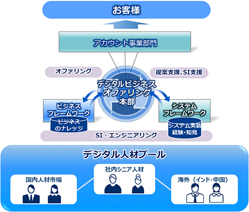 これまで個別に対応してきたノウハウをもとに、顧客システムのデジタル化の度合いから、「デジタルシフト構想」「対象システムのIT資産調査・棚卸等のシステム調査・評価」「モダナイゼーションソリューション」「保守運用」の4項目で構成されるサービスメニューを用意する。さらに、DXに関するエキスパートが集結した専任組織「デジタルビジネスオファリング本部」を4月1日付で新設し、コンサル要員の強化などを行うことで、モダナイゼーションを含むデジタルビジネスを加速する。