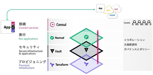 これらのツール群は、あらゆるアプリケーションやOSのマルチクラウドへのプロビジョニング、シークレット管理と保護、接続、実行を自動化する。各ツールは単独での導入も可能となっている。