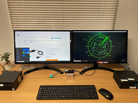 新製品は、ATEN独自のマルチスクリーンコントロール機能を搭載し、マウスポインターをディスプレイの境目を越えて隣のディスプレイに移動するだけで、操作するコンピューターを切り替えることができる。