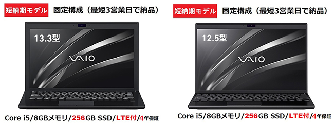 短納期モデルの販売は、VAIO直販ストア(法人向け)である「VAIOストアビジネス」で人気の構成を固定構成として最短3営業日で出荷するもの。ビジネスでニーズの高い構成となっているため、モバイルワーク/在宅ワークに必要十分な機能を搭載しており、安心して使用できる。「VAIO Pro PJ」と「VAIO Pro PG」の2モデルを用意している。