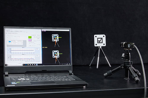 DXマーカは、厚さ0.7mm、外形が1辺40mmと80mmのガラス基板で、パレットや倉庫の棚、建物のドアやコーナーの柱、離発着地点など位置を特定したい場所や自動搬送機器、ロボット、ドローンなど無人移動体に装着し、建物や無人移動体の本体に装着されたカメラでマーカを読み取って位置を高精度に位置を検出することができる。また、このマーカには、マーカを装着した場所や無人移動体を特定できるIDデータも一緒に埋め込まれており、これらの情報は、カメラ1台と専用ソフトウェアで読み取ることが可能なため、低コストでモノの動きをデータ化し、管理・解析することが可能となる。