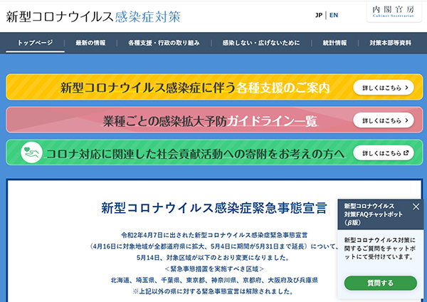 日本マイクロソフト、内閣官房の新型コロナ対策サイトにFAQチャットボット実装