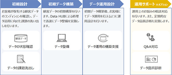 これにより顧客は、データの準備に時間をかけず分析や企業活動を行うことができる。また、同サービスでは初期構築後の定期サポートメニューも用意しているため、データ運用上の新たな課題や、システム更改によるデータ運用の見直しといった相談対応も実施する。