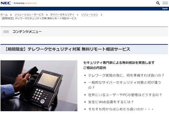 NECが無償でテレワーク時のセキュリティ対策相談、期間限定提供