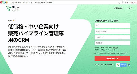 ゾーホージャパン、中小企業や個人事業主向け初心者向けCRM