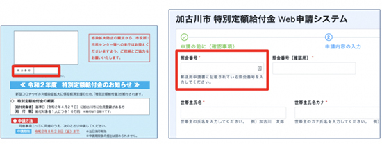 この申請フォームによって市民は、郵送された申請書に記載の「照会番号」と、本人確認書類画像の添付、本人名義の口座情報画像の添付により、スマートフォンやPCからオンライン申請を行うことができる。 受け取ったデータは、照会番号に紐付いており、 申請書のデータとの照合が簡単に行えるため、 給付までの期間を大幅に縮めることが可能となる。