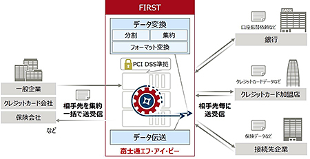 FIRSTは、同社が国内初の金融VANとして87年に販売を開始した。企業と銀行との口座振替依頼などのデータ交換を実現するサービスとして、現在、70を超える顧客に利用されている。今回、FIRSTの基盤を新たに富士通のクラウド上で構築し、クレジットカード・金融業界のさまざまな企業間データ伝送にも利用可能なサービスへとリニューアルした。