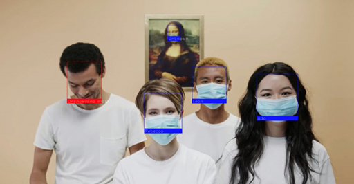 新ソリューションでは、ネットワークカメラやサーマルカメラで撮影した動画に対し、適したAIアルゴリズムを利用することで、感染症拡大防止に役立つ「マスク着用確認AI」「熱感知AI」「マスク着用/非着用時人物認識AI」「ソーシャルディスタンス検知AI」の機能を実現する。