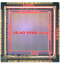 従来のSiPMでは、一度光を検出した受光セルは一定時間応答ができなくなるといった物理上の特性があり、漏れなく光を検出するためには非常に多数のセルを搭載することが必要だった。今回、SiPM上に受光セルを再起動させるトランジスタを搭載することで、受光セルが応答できない時間を短縮することに成功した。これにより、少ないセル数でも効率よく光を検出できるようになり、SiPMの大幅な小型化を実現した。小型SiPMを用いることで、限られたパッケージ面積内に多数のSiPMを配列することができ、高解像度化を図った。