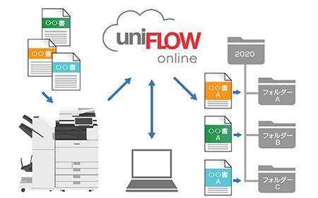 uniFLOW Online Cloud Scan Advanceは、高速で高品質なスキャンが可能なimageRUNNER ADVANCE DXシリーズとの組み合わせにより、紙文書を効率的に電子ファイリングする「アドバンスドスキャン」を実現。オフィスのデジタルトランスフォーメーションの加速と生産性向上を支援する。