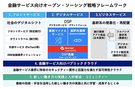今回、企画から実行段階までの全行的なデジタル変革を推進するため、日本IBMの「オープン・ソーシング戦略フレームワーク」を活用してビジネス改革の企画やデジタル活用に強みをもつ人材の育成を進める。具体的には、顧客体験のデザインに関する実践的なワークショップの実施や、データ分析のスキルをもつ技術者の養成を行う。さらに、将来的には、中国銀行の内部人材による自律的なデジタルトランスフォーメーションの推進を目指していく。
