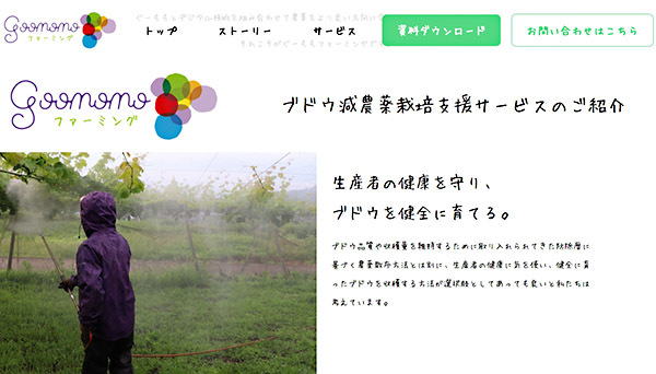ブドウ減農薬栽培支援サービスは、DX技術でブドウ栽培での圃場の環境データの変化を24時間モニタリングすることで、適切な時機での農薬散布をコンサルティングするもの。結果的に、防除暦に基づく標準的な農薬散布と比べて2分の1から3分の1の回数に減らすことも可能となる(同社実績ベース)。これにより、農薬コストの低減に加え、散布作業の効率化、健康被害の抑制につなげることができ、品質の高いブドウ栽培を支援する。