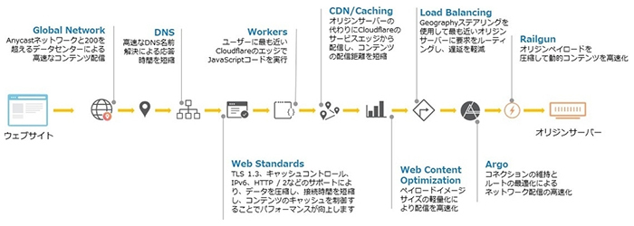 さらに、Argo Smart Routingの活用により、Cloudflareのプライベートネットワークを利用して、最も混雑していない、最も信頼性の高いパスでユーザーをルーティングすることで、ネットワークの高速化を図る。これによって、平均してウェブサイトの表示の遅延を33%、接続エラーを27%削減する(Cloudflare調べ)。