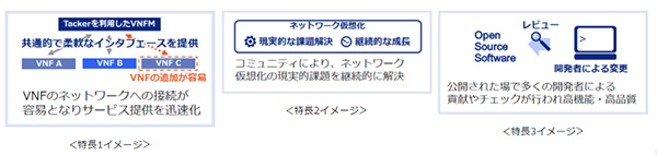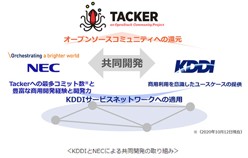 またKDDIとNECは、OSSの発展には利用者と開発者の協力が重要で、特にOpenStackコミュニティーにおいてはTacker利用者である通信事業者のユースケースを重視する立場をとる。今後、両社は開発した成果OpenStackのコミュニティーに還元していく考えで、KDDIはユースケースをコミュニティーに提供し、それを基に商用開発経験を持つNECが商用導入できる機能として開発することで、通信事業者のニーズをソフトウェアに反映させていくという。