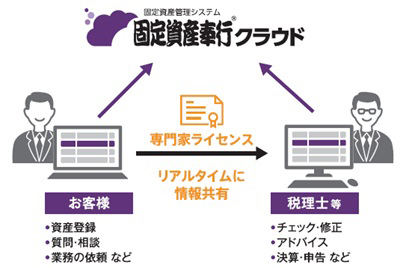 税理士などの専門家と固定資産の情報をリアルタイムに共有でき、同じ画面を見ながら税務判断などのアドバイスを早く受けられる。資産の登録や移動など拠点からのエントリー運用も容易に行え、入力やチェック業務、無駄な待ち時間を減らすことができる。