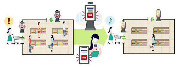 同社では、ニューノーマルに即した新しいソリューションとして、密回避サイネージの導入をスーパーマーケット、ドラックストア、コンビニエンスストアなど様々なリテール店舗のほか、病院、役所、オフィスなどへも拡大していく計画。